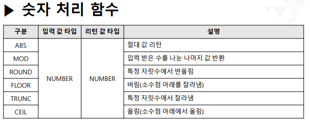 SELECT ABS(-10) FROM DUAL;--결과 : 10